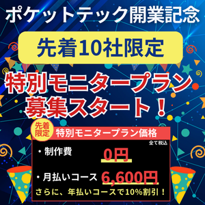 2026年1月ポケットテック開業記念『特別モニターキャンペーン』を実施しております。